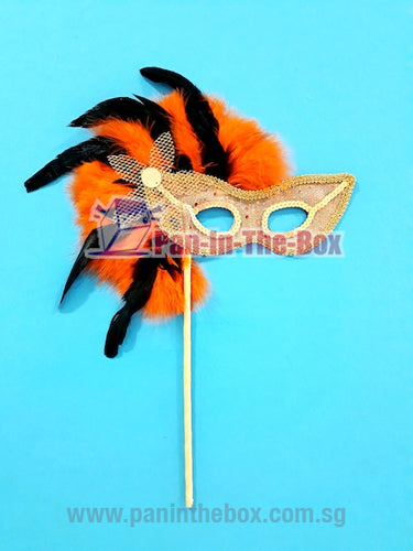 Orange Masquerade Mask With Stick